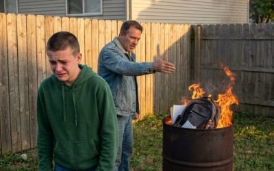 Stałem tam, gdy ojciec wrzucał w ogień moje ubrania, książki i ostatnie zdjęcie mamy, jakby moje życie nic nie znaczyło.…